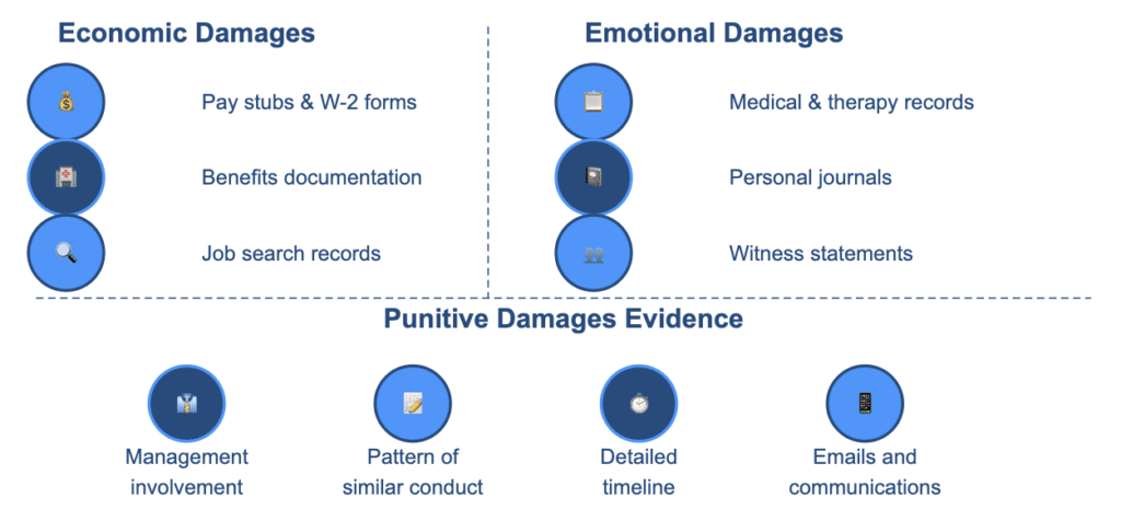 The strength of your damages claim depends heavily on documentation. Here’s what you should gather to support each type of damages: